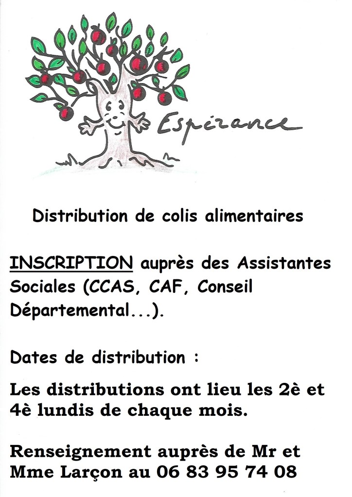 Depuis août 2018, nous accueillons, encourageons et participons au service de l’association caritative Espérance pour de l’entraide alimentaire régulière et aussi de l’entraide matérielle en fonction des besoins et des possibilités.